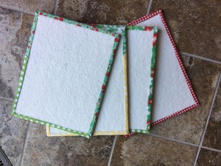 It was a great way to use up my scraps of fabric and batting. The only thing I had to purchase was the foam board and I was able to get 4- 11″x14″ pieces at Five Below. It only took me about 2 hours to make all 4 (not counting the time it took me to find my glue gun!).