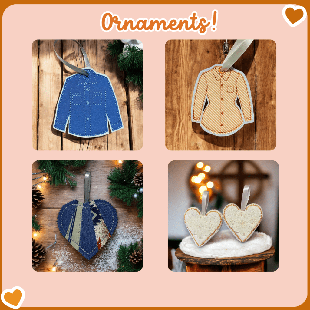 Memory ornaments are perfect for sharing a piece of someone special with the whole family. Whether it’s a holiday tradition or a keepsake to hang all year round, these little treasures are made from meaningful scraps—lace from a wedding dress, a tie from Dad, or a piece of Grandma’s apron.
