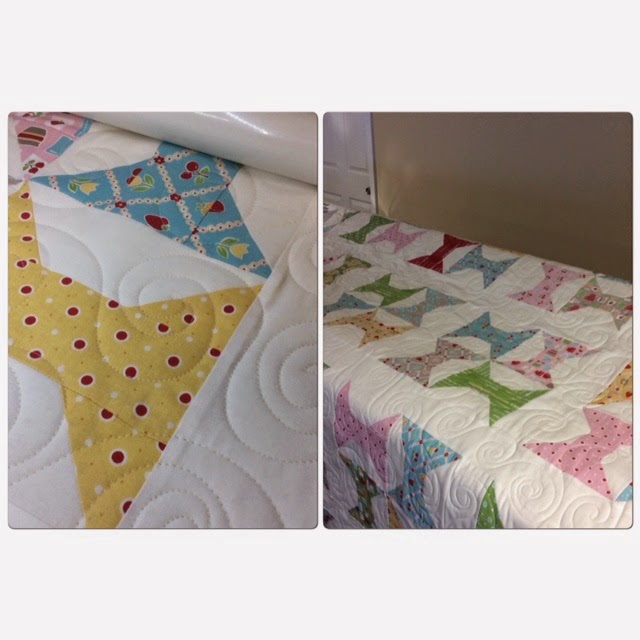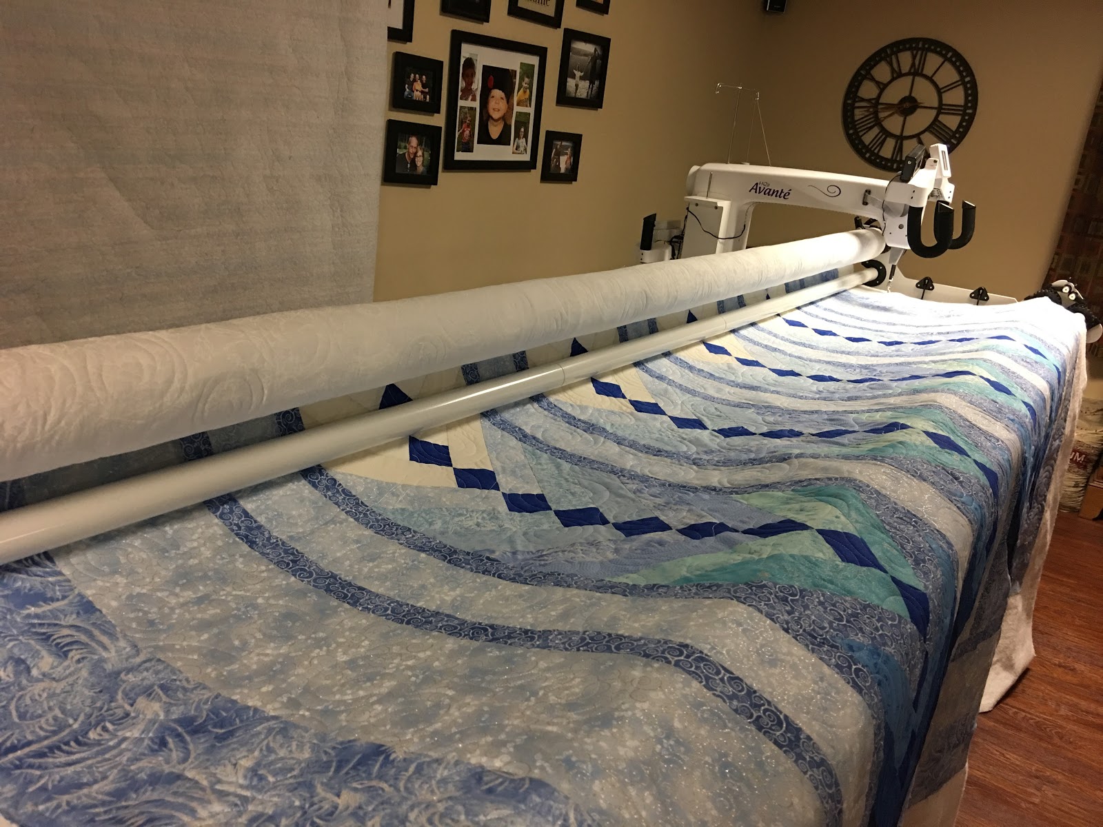 The pattern I used is called Ocean Breeze by Lorien Quilting. I purchased it from Urban Elementz. The quilt was stitched on my HandiQuilter Avante.