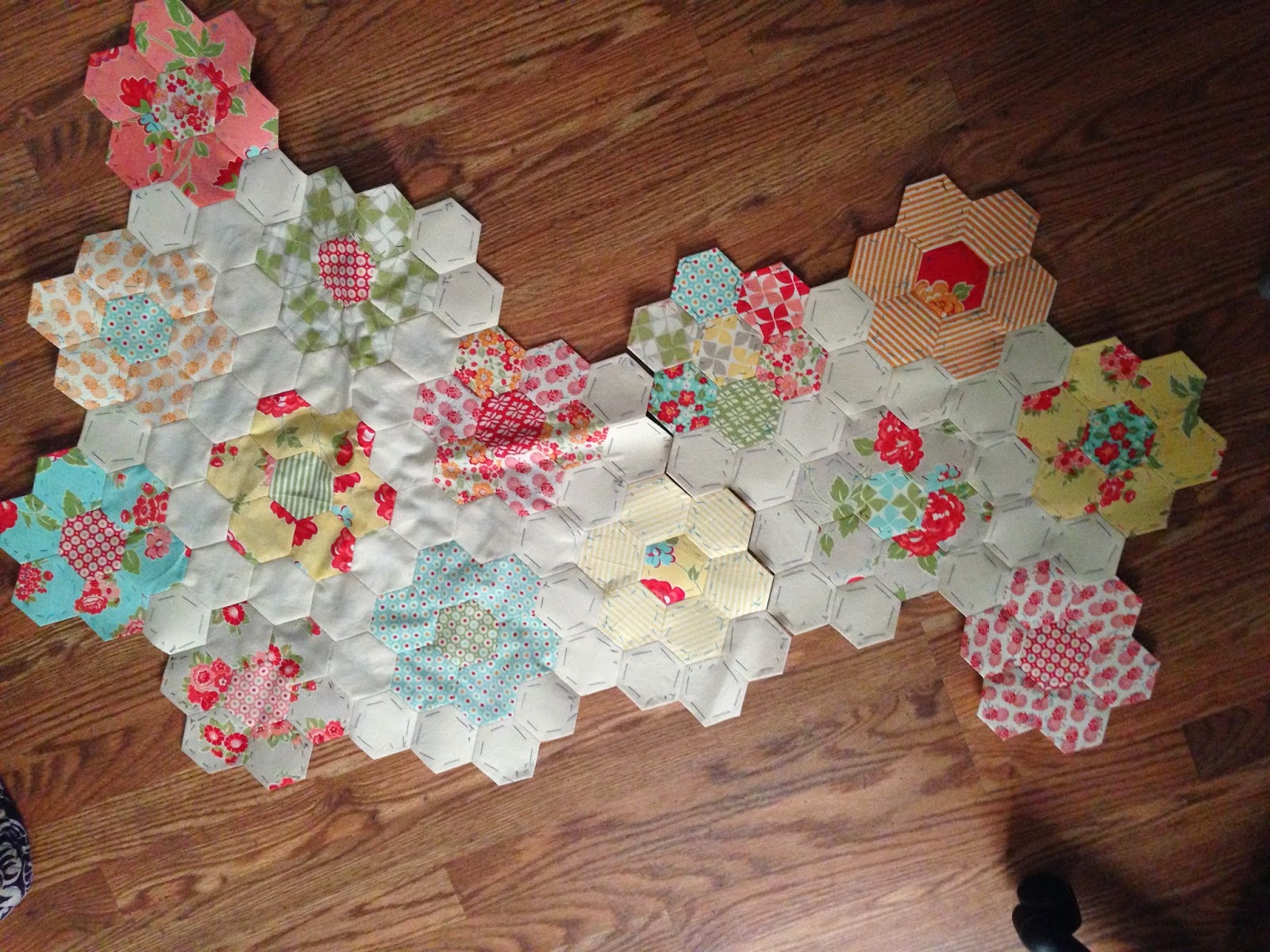 The weather finally has turned beautiful and everything is starting to bloom. It certainly had me full of energy and anxious to make more progress on my Grandmother’s Flower Garden quilt.