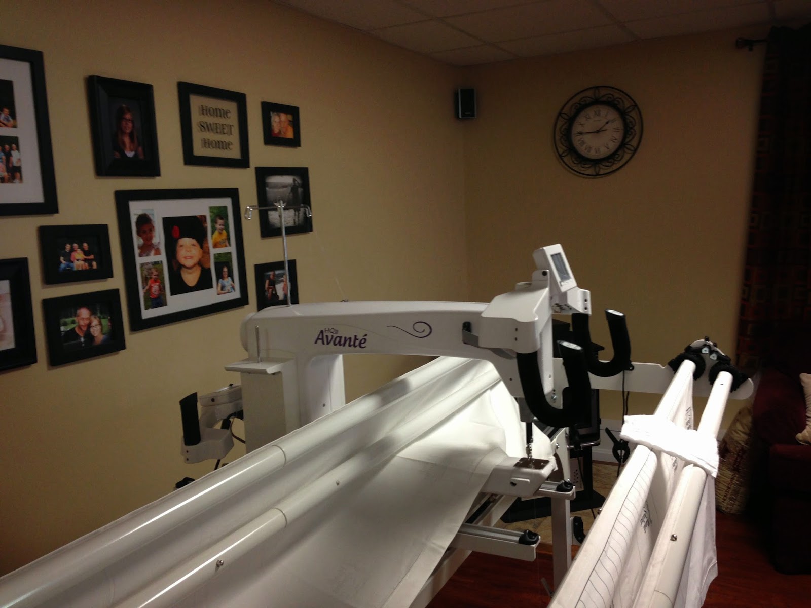 Had my Mother’s Day Gift setup.  Here is my new HandiQuilter Avante (gosh I have a wonderful husband!).  I am calling her Lady A; My Grandmother’s name was Alma and she sure was a wonderful grandmother 🙂  I figure “Lady A” could stand for Alma, Allison, or Avante 🙂